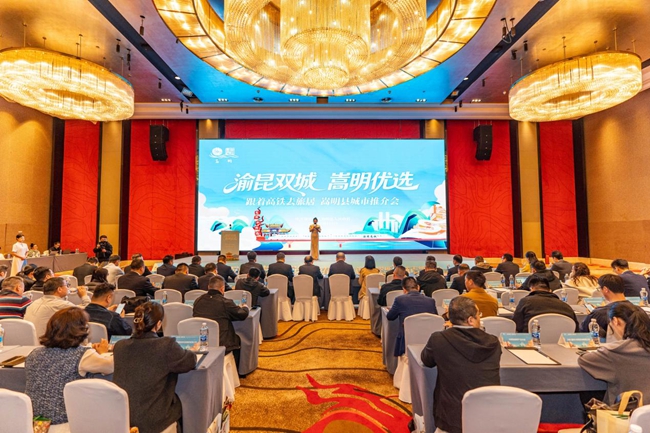 昆明信息港讯 记者李莹 杨锦佳 周弦 冯垚 3月12日,“渝昆双城·嵩明优选—跟着高铁去旅居”昆明嵩明县城市推介会在重庆举行。来自滇渝两地的政府代表,企业家代表百余家齐聚山城,共叙友谊、共话合作、共谋发展。重庆市工商联党组成员、二级巡视员谢华民,云南省工商联副主席、云南省川渝商会会长银康参出席会议并致辞。