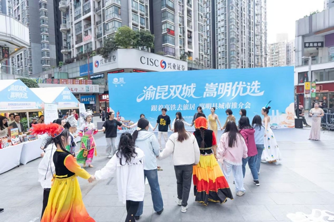 当日,“嵩明旅居生活体验展”在重庆南坪万达广场展出,嵩明县携本地知名企业及特色产品亮相,邀请广大重庆市民感受“有一种叫云南的生活”。现场设置“快闪活动”和“打卡拍照区”,通过简短精彩的快闪表演与特色场景打卡互动,展示嵩明独特自然风情与人文魅力。