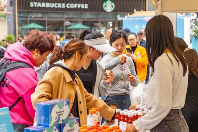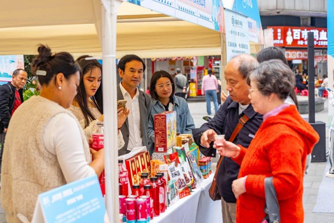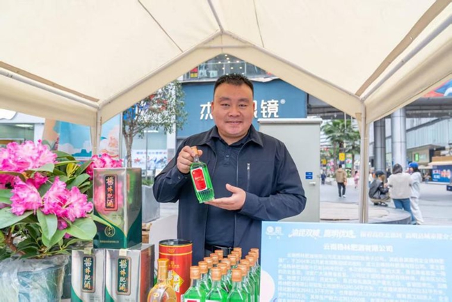 下午2时许,体验展刚开场,杨林肥酒的展位前就排起了长队。一杯杯翠绿如玉的肥酒递到市民手中,不少人举杯端详、轻嗅浅酌。“口感很特别,完全不像印象中的药酒。”重庆市民张先生品尝后连连称赞。嵩明县农业农村局局长李加发化身“产品推介官”,现场向市民推介——“这款有着146年历史的‘杨林肥酒’,以‘药食同源’传统工艺为核心,甄选十余味药材配以高原蜂蜜,历经三年浸泡提纯,兼具健脾润肺的功效,是我们云南省著名商标。”