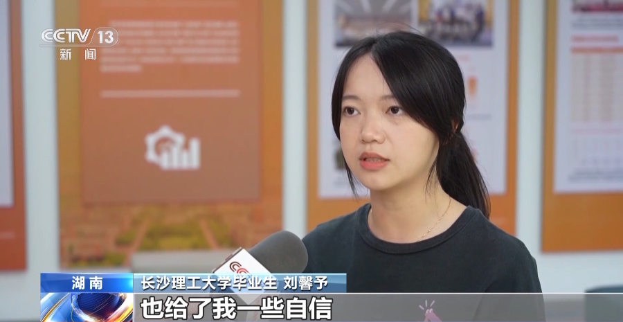 长沙理工大学毕业生 刘馨予:比如说,她有跟我分享过面试有哪些需要注意的地方,给予了我非常大的帮助,也给了我一些自信。