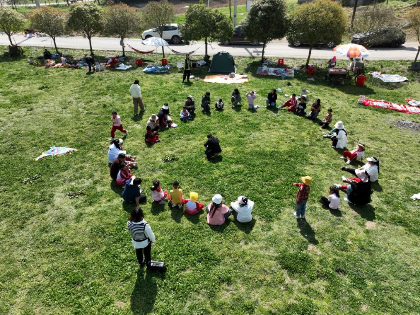 2025年春假期间,湖北恩施州利川市第三民族实验小学组织学生和家长一起放风筝。(图片来源:利川市融媒体中心)