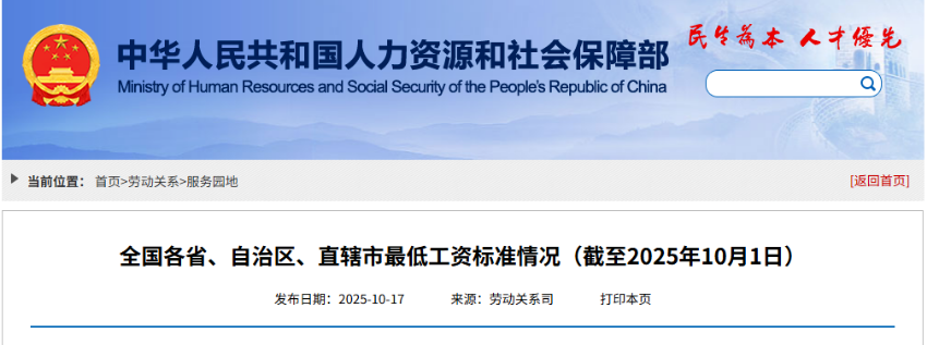 近日,人力资源和社会保障部网站公布全国各省、自治区、直辖市最低工资标准情况(截至2025年10月1日)。从月最低工资标准看,上海以2740元的标准居全国首位;从小时最低工资标准看,北京以27.7元的标准为全国最高。