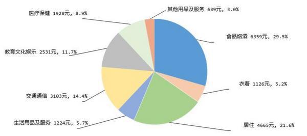 上海以40892元的人均消费支出位居全国榜首,这一数字几乎是全国平均水平的两倍。