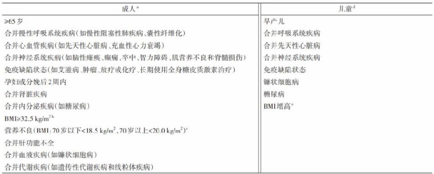 以下高危人群感染流感病毒后易发展为重型/危重型病例,应给予高度重视,提前接种疫苗,出现症状后及时进行流感病毒核酸检测及其他必要检查。