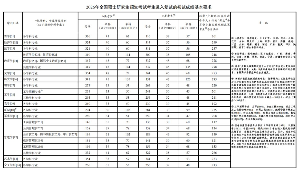 今天起,2026年全国硕士研究生招生考试初试成绩陆续可查。教育部发布《2026年全国硕士研究生招生考试考生进入复试的初试成绩基本要求》(国家分数线)。教育部要求各招生单位根据《2026年全国硕士研究生招生工作管理规定》,在国家分数线的基础上,自主确定并公布报考本单位的考生进入复试的初试成绩要求及其他学术要求。