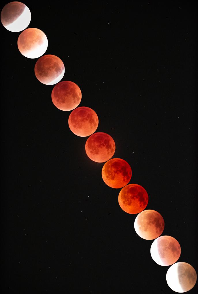 本次月全食将从3日傍晚开始,整个过程主要分为半影食始、初亏、食既、食甚、生光、复圆、半影食终七个阶段。其中全食阶段,也就是民间俗称的“红月亮”持续约1小时。