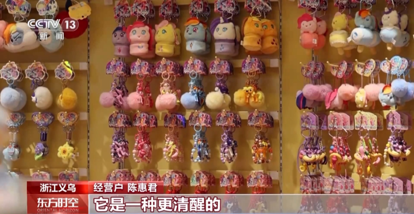 记者观察发现,在义乌,情绪消费不仅催生了小商品产业的新品类,也在重塑传统产业的发展逻辑。经营户陈惠君十多年前做的只是传统的挂件,产品主打实用功能;而如今,她通过IP赋能与迭代升级,从“卖商品”到 “卖情绪”转型,让传统小商品具备持续的情感吸引力。