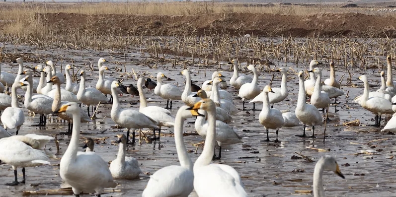 成群小天鹅尽显生态之美。图源:央广网