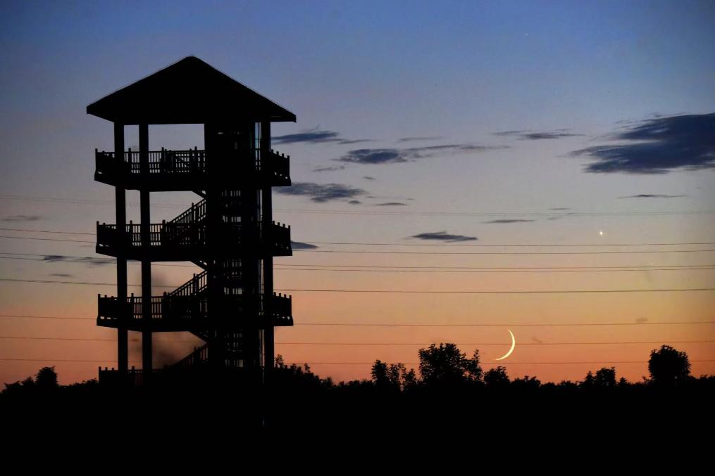 2024年9月5日,在天津市静海区团泊湖拍摄的“长庚伴月”。(杨婧 摄)